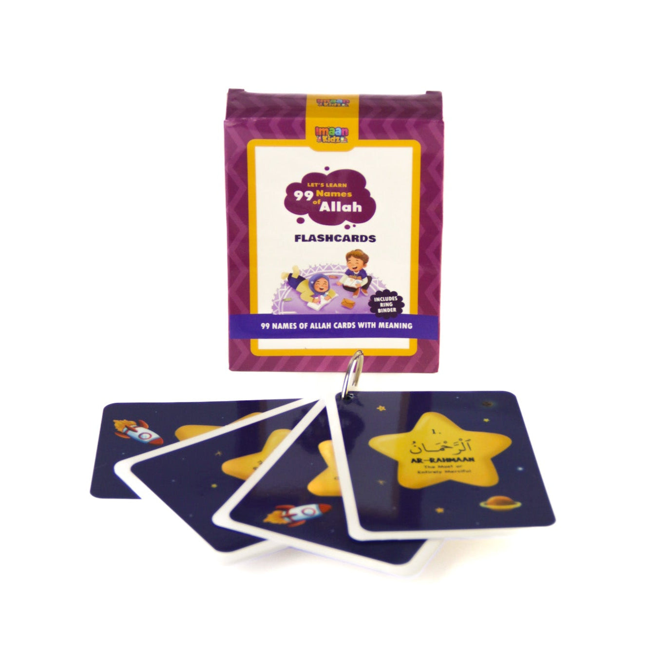 99 Names of Allah flashcards with translation to match the Let's Learn 99 names of Allah sound book.